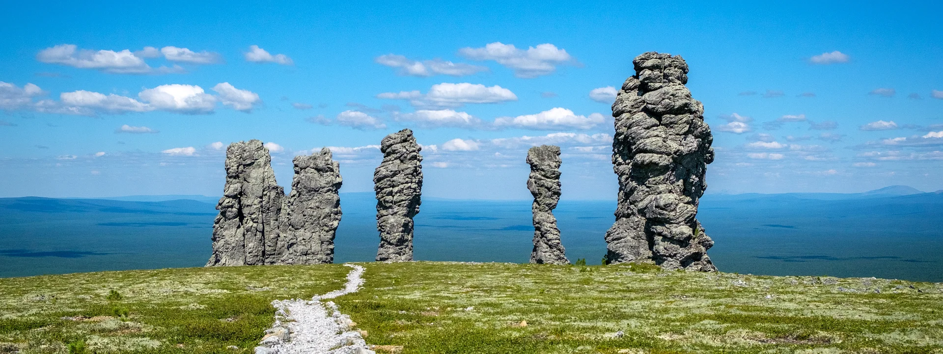 Альпийские луга, бескрайняя тундра и бирюзовые озёра. Это самая высокогорная часть Урала с высшей точкой — горой Народная (1894,5 метров над уровнем моря). Восхождение не требует специального снаряжения. Вторая по популярности вершина Приполярного Урала — гора Манарага, известная своей необычной формой вершины из семи жандармов («жандарм» — отдельно стоящая на рельефе скала). Подняться на зубья можно только со специальным снаряжением, пешие туристы доходят только до крайнего.