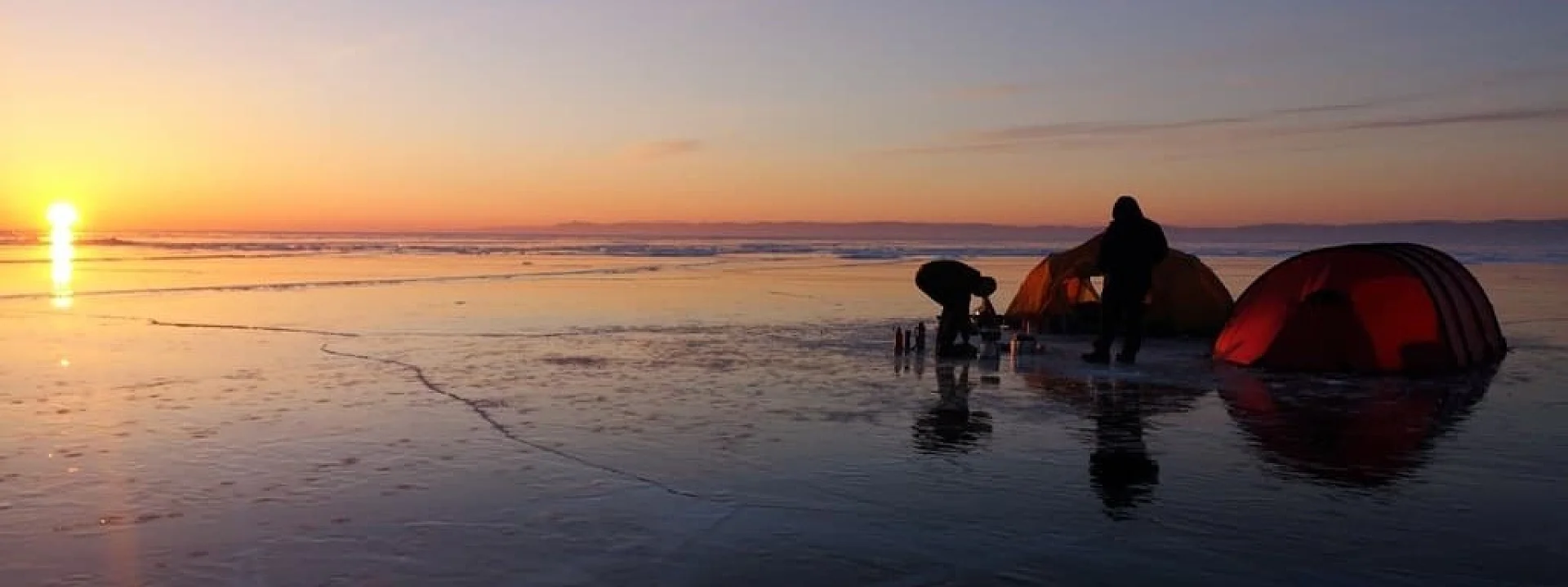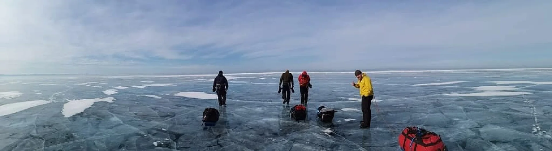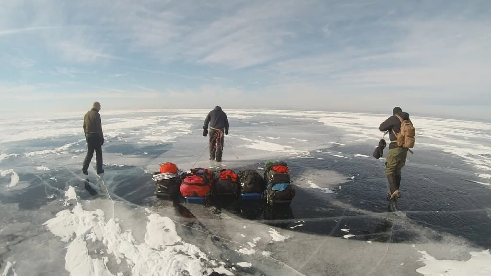 С тех пор как мы вышли из Большого Голоустного и начали двигаться вдоль берега по направлению к Листвянке, нам все больше и больше встречались люди. На коньках, машинах и даже грузовиках. Из всех транспортных средств, мы чаще всего встречали катера на подушках (Хивусы). В какой-то момент к нам подъехал квадроцикл. Это оказался сотрудник службы МЧС. Он рассказал нам об условиях тех участков, через которые нам предстояло пройти. Новости были хорошие. Проходимость предсказывалась легкой. Сотрудник службы МЧС выдал нам по брошюрке с инструкциями о том, что делать в случае, если ты или твой коллега провалились под лед. Она до сих пор греет меня воспоминаниями рядом с чайником у меня в офисе. Чем ближе мы подходили к Листвянке, тем больше мы встречали людей. Завернув за мыс Листвянный, мы увидели столпотворение. Было воскресенье, и народ приехал отдыхать из всех близлежащих населенных пунктов, включая самый крупный — Иркутск (60 км). По показателям наших датчиков, в тот день мы прошли около 28 километров.