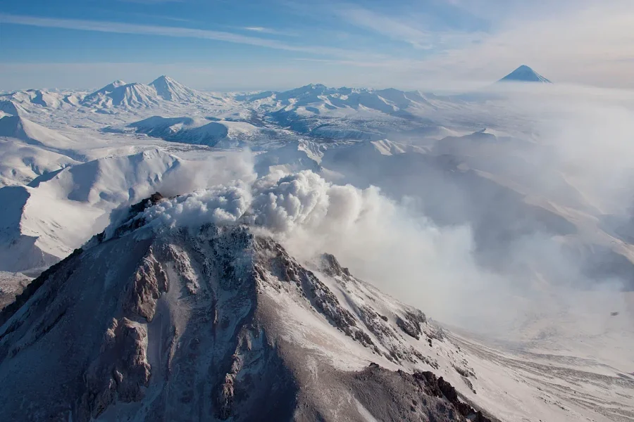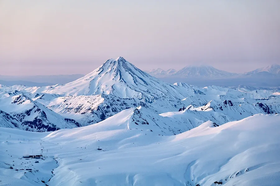 Хели-ски — это максимальное катание за минимальное время. Вертолёт даёт доступ к удалённым склонам, где нет подъёмников, толпы и раскатанного снега. Часто можно сделать за день несколько спусков (точное число зависит от погоды, логистики и группы). Плюс — это масштаб: Камчатка с высоты птичьего полёта открывается целиком: вулканы, океан, кратеры, лавовые поля. Это не просто доставка к старту, это отдельное приключение.