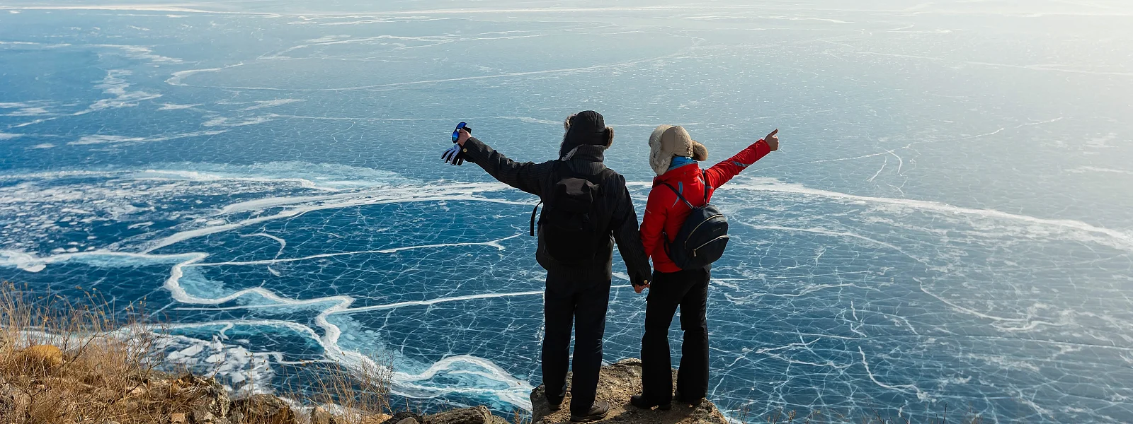 - Прозрачный лёд Байкала: катание на коньках, поездки на хивусах, прогулки по трещинам и пузырькам во льду.
