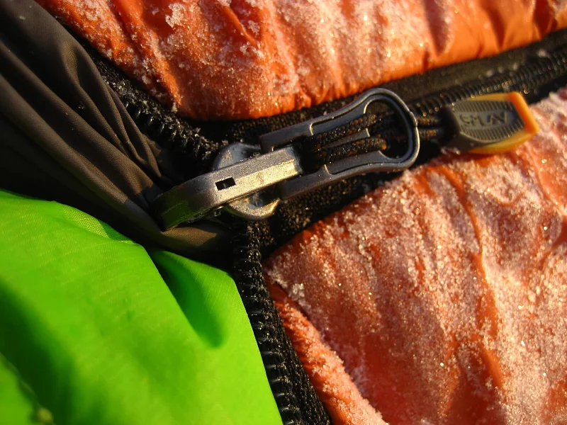 Молния расстёгивается не совсем до конца. Понравился бегунок на молнии, он простой, без выпирающего изгиба. Как, например, на модели Fantasy 233 Primaloft®. Мне лично расстёгивать молнию изнутри спальника с таким бегунком сложнее.