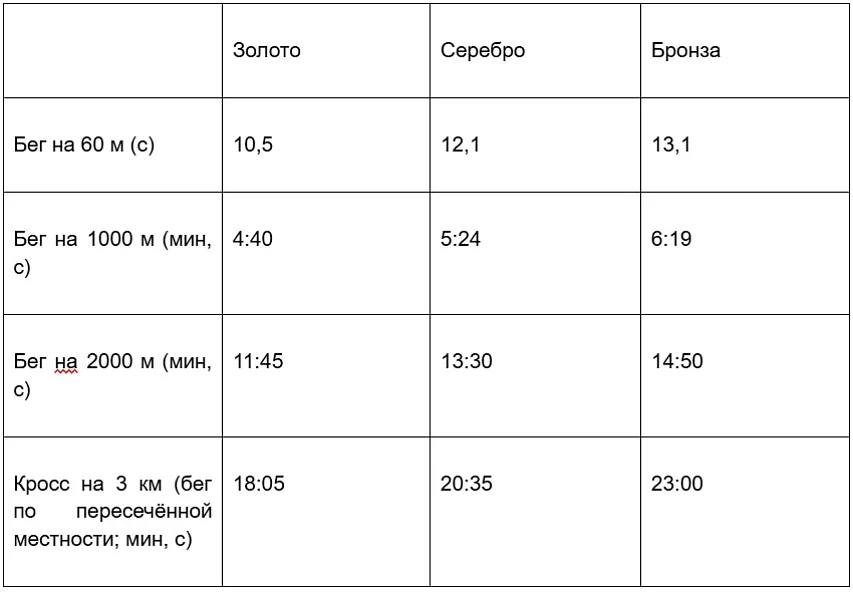 Беговые нормативы могут включать такие дисциплины, как: