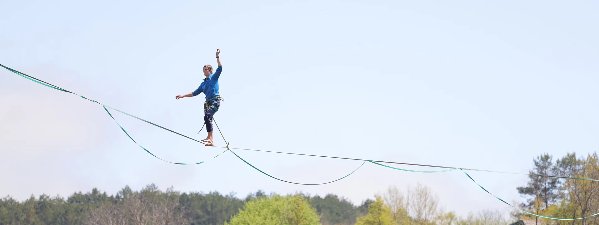 Но слэклайн не ограничивается лишь развлекательной и оздоровительной функциями. Он также способен заряжать вас духовно и эстетически. Всё потому, что слэклайн — это ещё и форма искусства, год от года набирающая обороты. Перформансы с участием слэклайнеров всё чаще можно увидеть в различных шоу, театрах, фестивалях и других культурных мероприятиях, причём не только в формате впечатляющих трюков, но и в качестве ярких визуальных метафор. Ведь как могут не вдохновлять люди, балансирующие на головокружительной высоте на тончайшей полоске ткани?