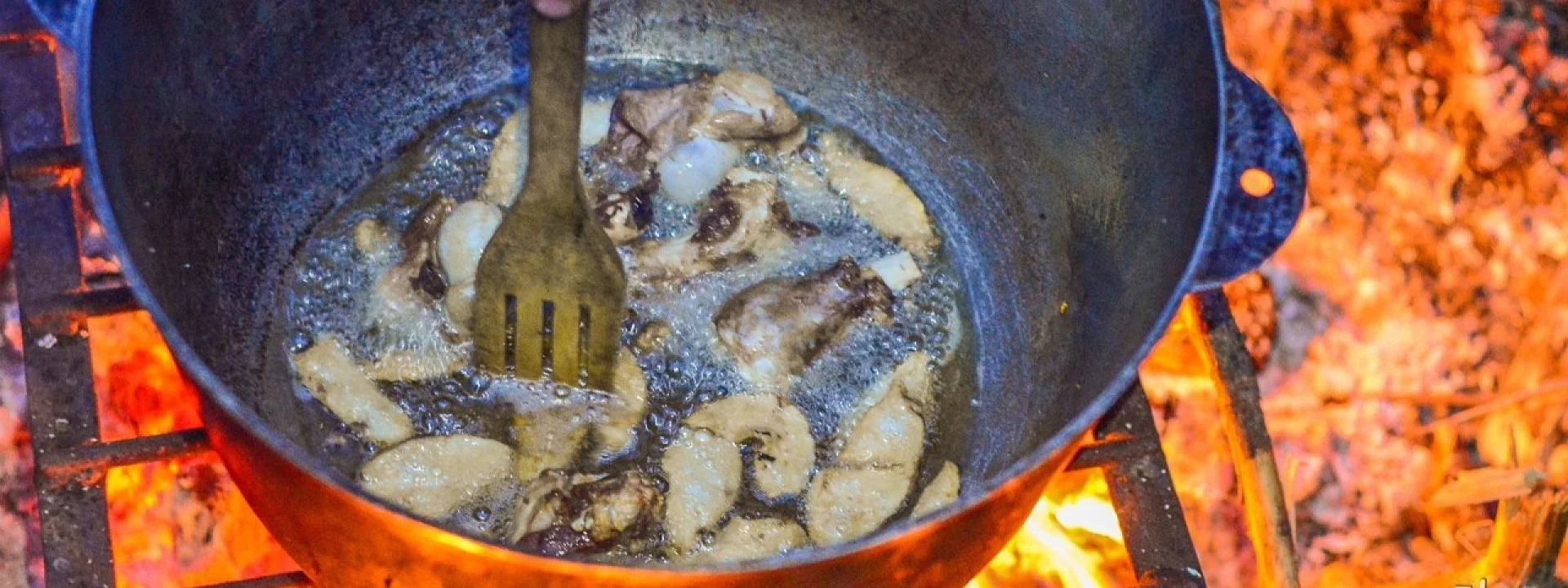На дне котла на масле чуть подогреваем сушёный чеснок и копчёную паприку.