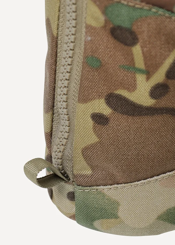 По низу расположено усиление накладками из ткани Cordura® 500d с полиуретановым покрытием на изнанке. Данная ткань имеет большую прочность и обеспечивает умеренную защиту от влаги. Усиление идет по ранту высотой 4 см, по задинке и носку. Подошва и усиления прошиваются особо прочной бондированной нейлоновой нитью для снаряжения