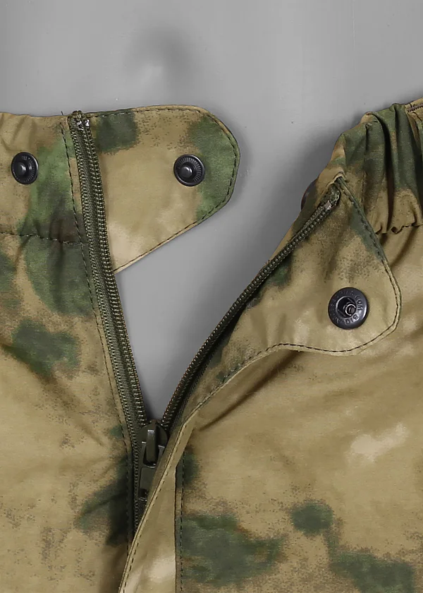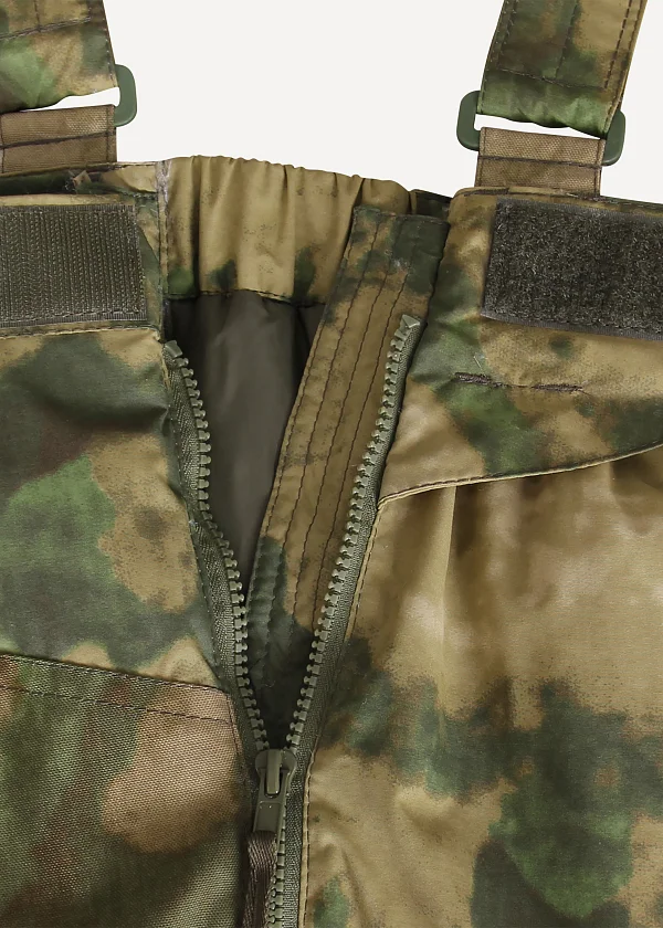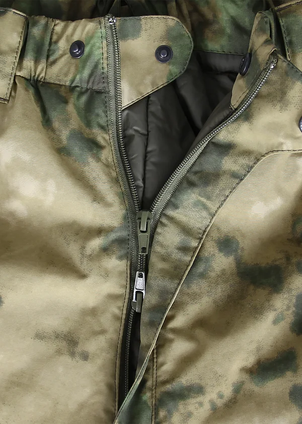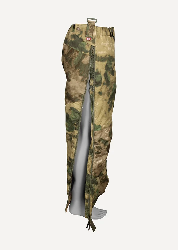 - Боковые молнии во всю высоту, полностью разъемные, позволяют быстро надевать брюки не снимая обувь. Надежная крупная тракторная молния, на замках удобные ухватки из тесьмы для работы в теплых перчатках. Изнутри молния прикрыта планкой для защиты от ветра и закусывания