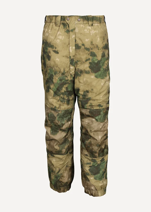 - Низ брюк стягивается вшитыми широкими резинками и дополнительно патами на липучках, снимающих нагрузку с боковой молнии. Имеется небольшая регулировка объема для использования с зимней обувью с толстыми голенищами. Усиления накладками из ткани Cordura® в наиболее протираемых местах — на внутренней стороне штанин, на изнанке низа в месте контакта с обувью, также из усиленной ткани выполнены нижние паты
