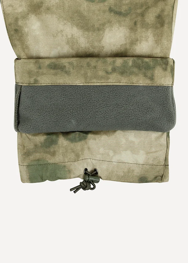 - Внизу брюк внутренние манжеты из тонкой ткани с утяжкой эластичным шнуром с фиксатором Duraflex®, плотно надеваются поверх голенища ботинок. При этом низ штанины свободно свисает, защищая от попадания грязи в обувь