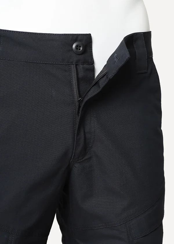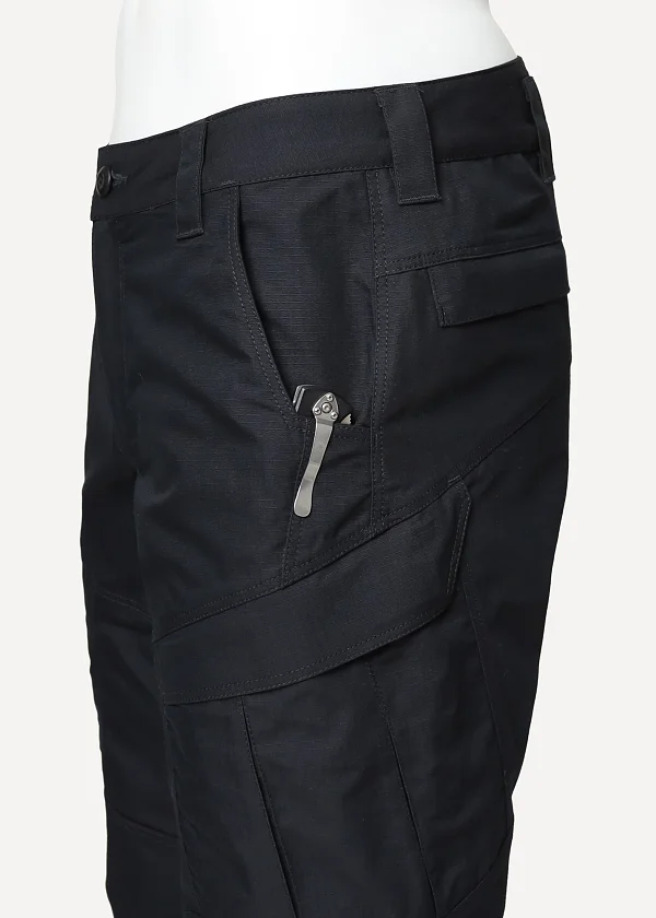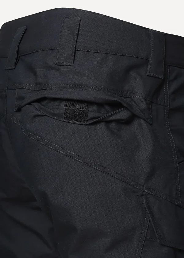 Глубокие боковые подрезные карманы с открытым входом. Мешковина из легкой смесовой ткани. Край входа в карман усилен накладкой из основной ткани для защиты от протирания клипсами ножей и мультитулов