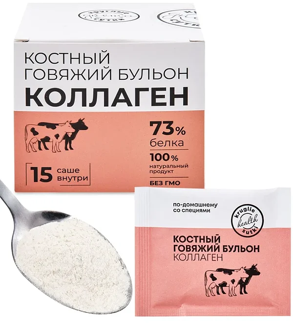 Бульон - вкусный и полезный продукт, источник важных элементов для оздоровления кишечника, поддержки иммунитета, крепости суставов, улучшения состояния кожи, ногтей и волос. Питьевой бульон быстрого приготовления содержит гидролизованный коллаген 2(II) типа, лучше всего усваивается именно в натуральной форме, т.к. в составе более 20 аминокислот. Они являются отличным источником белка, строительным материалом для соединительной ткани сухожилий, связок, хрящей, отвечают за их прочность и эластичность, улучшают подвижность суставов, повышают качество жизни.