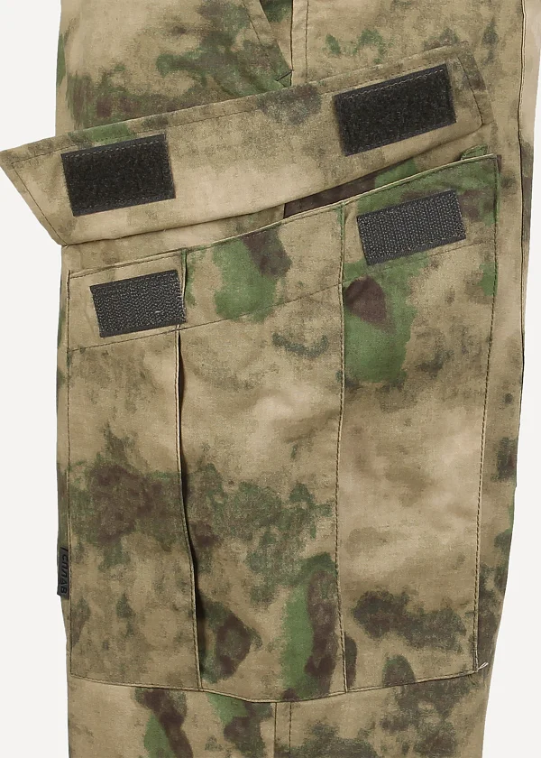 - Большие накладные грузовые карманы с наклонным верхом и вертикальными складками для создания объема, с клапанами на липучках