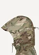 - Капюшон регулируется в двух измерениях эластичным шнуром с фиксаторами: утяжка вокруг овала лица и утяжка объема (фиксатор на затылке). Имеется небольшой мягкий козырек. На изнанке в основание воротника вшита вешалка из тесьмы