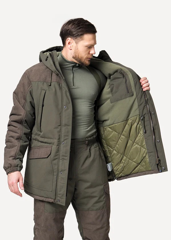 - Два внешних теплых нагрудных кармана на молнии с планкой.