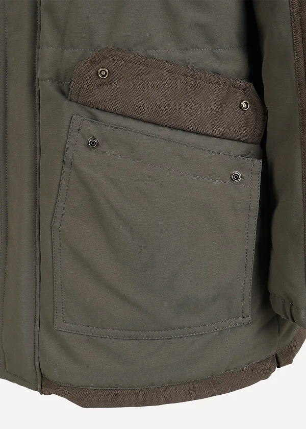 - Два нижних объемных кармана с клапанами на кнопках с подкладкой из теплого велюра.