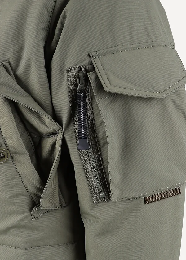- Ветрозащитный клапан и карманы на груди застегиваются на большие пуговицы, которыми удобно пользоваться в перчатках