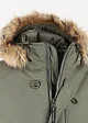 - Капюшон с отстегивающейся опушкой, регулируемый по объему и овалу лица