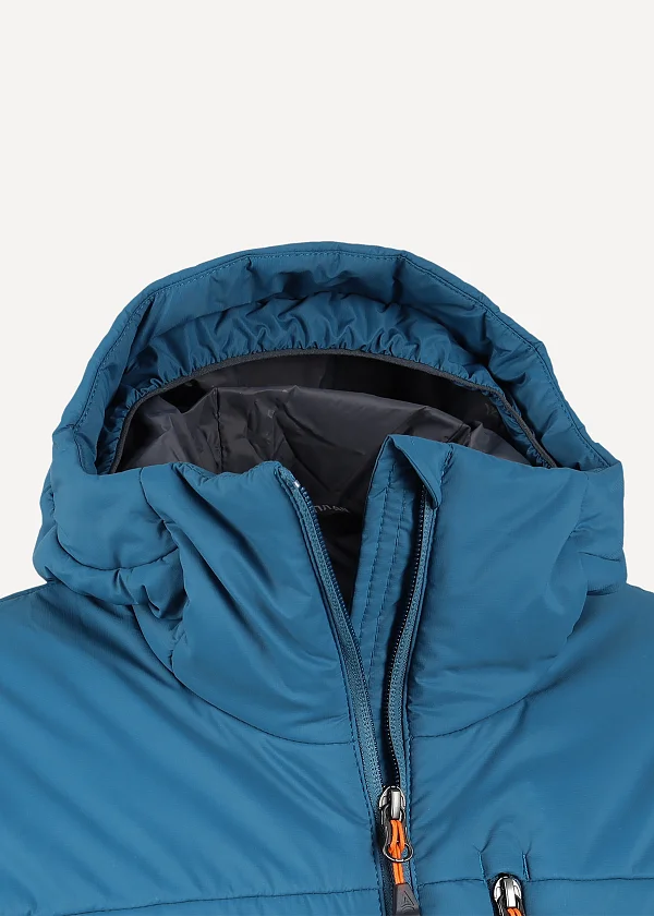 - Втачной нерегулируемый утеплённый капюшон с эластичной кулиской и эластичной вставкой в затылочной части для надёжной фиксации капюшона на голове