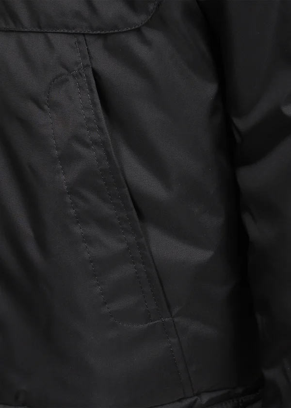 - Ветрозащитный клапан, прикрывающий фронтальную молнию; низ куртки и манжеты, регулируемые по размеру при помощи дополнительных кнопок, препятствуют проникновению холода под одежду