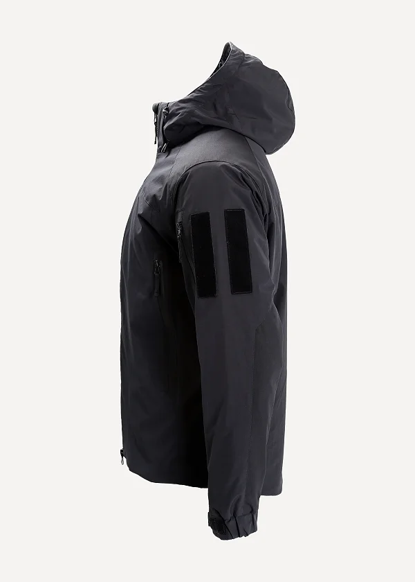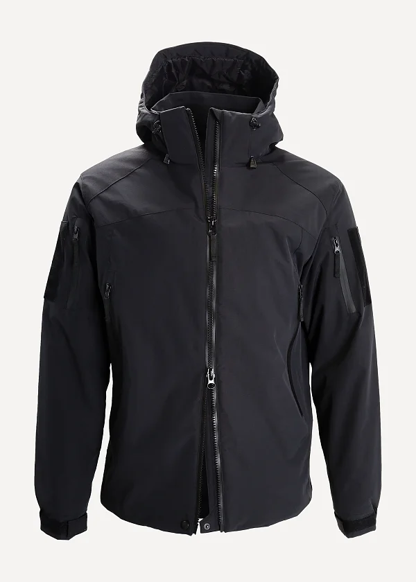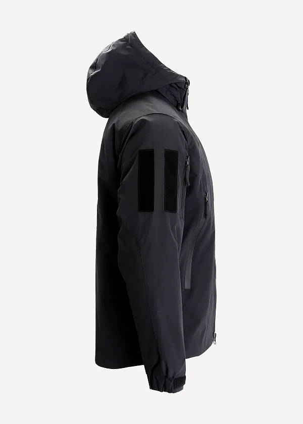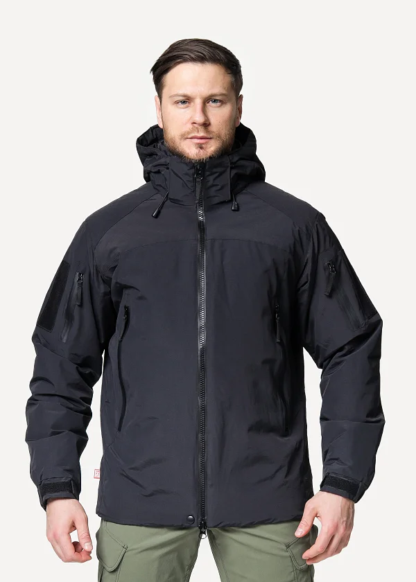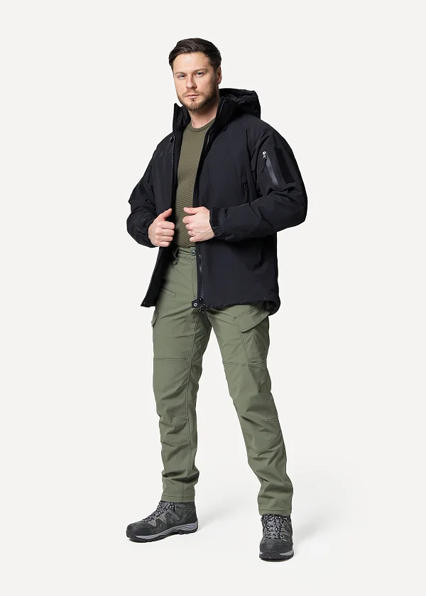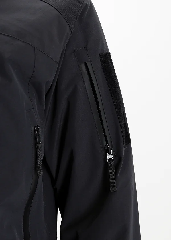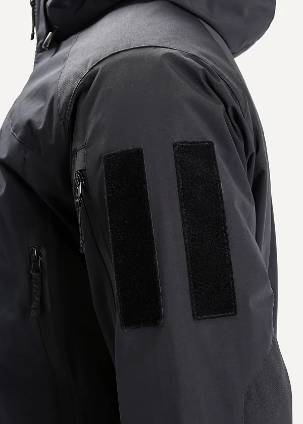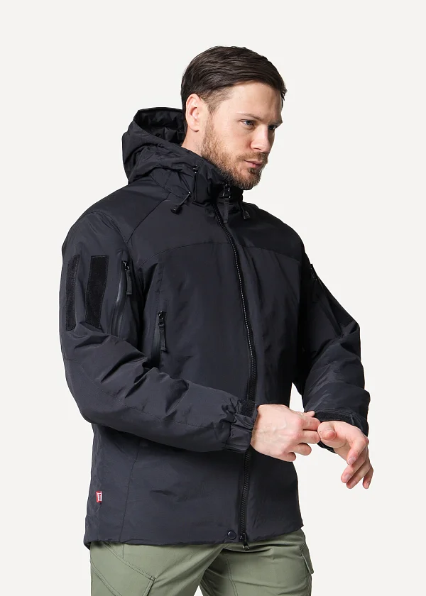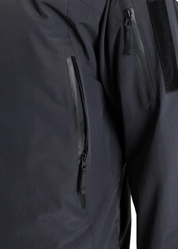 - Нарукавные карманы со входом на вертикальной брызгозащитной витой молнии. Липучки для крепления шевронов (10×15 см) из двух фрагментов, выполнены методом лазерной резки со скруглением углов