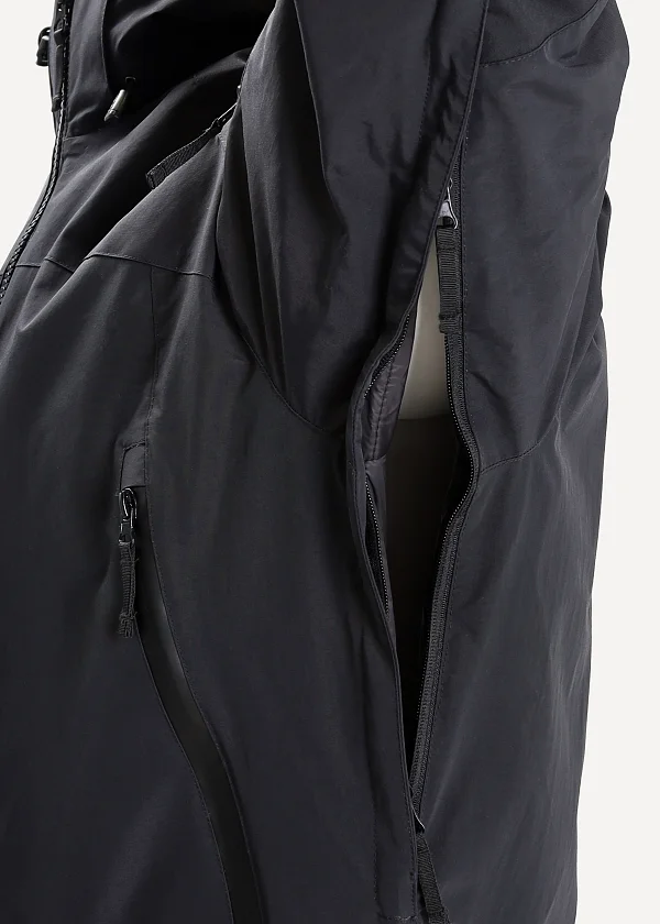 - Подмышками длинные двухзамковые вентиляционные молнии, расстегиваются от центра к концам. Молнии обычные витые, прикрыты утепленными планками