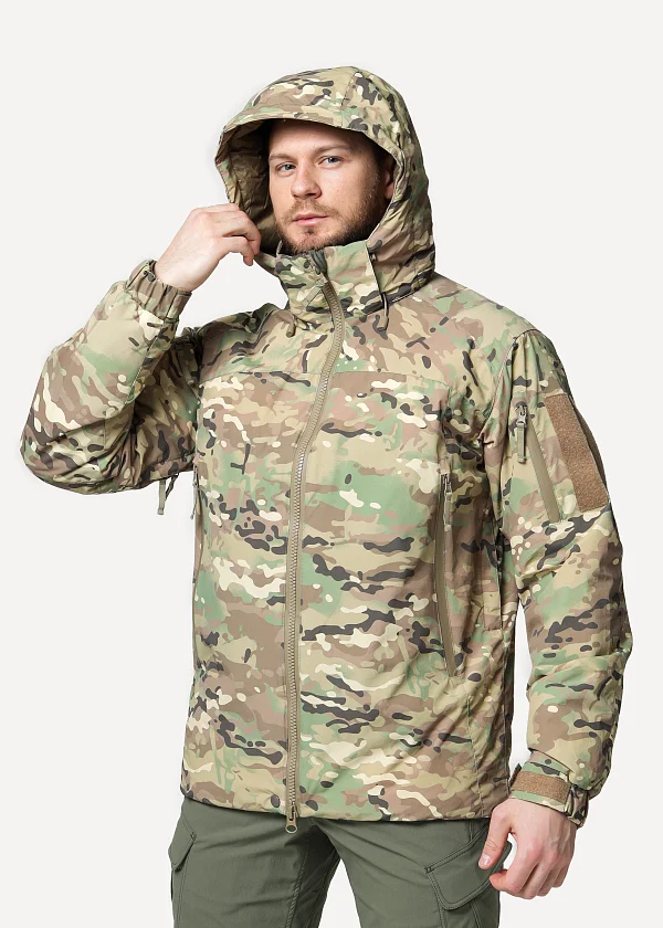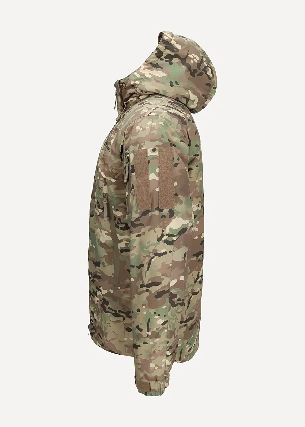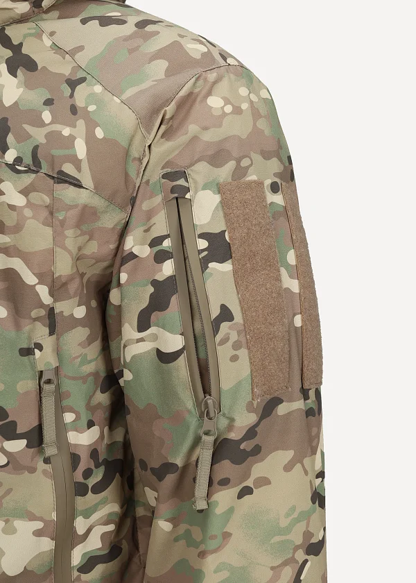 - Нарукавные карманы со входом на вертикальной брызгозащитной витой молнии. Липучки для крепления шевронов (10×15 см) из двух фрагментов, выполнены методом лазерной резки со скруглением углов
