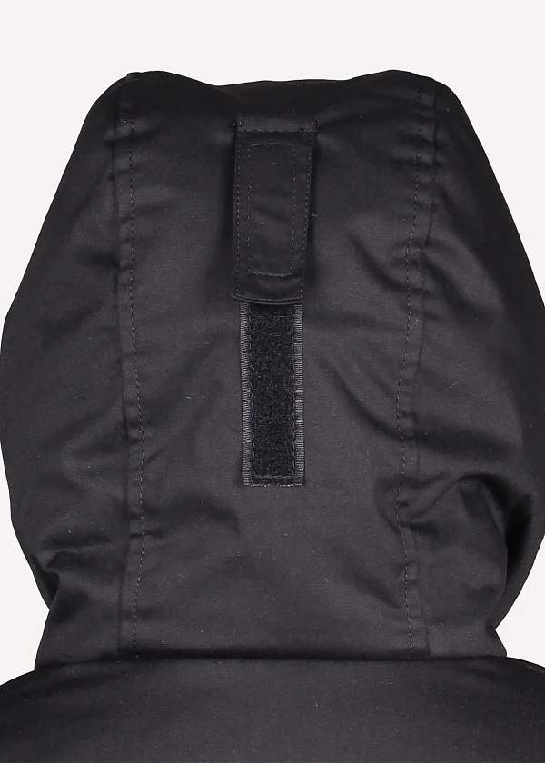 - Капюшон регулируется по овалу лица при помощи резинового шнура с фиксатором и по объему при помощи паты с липучкой