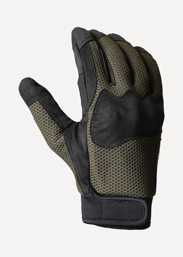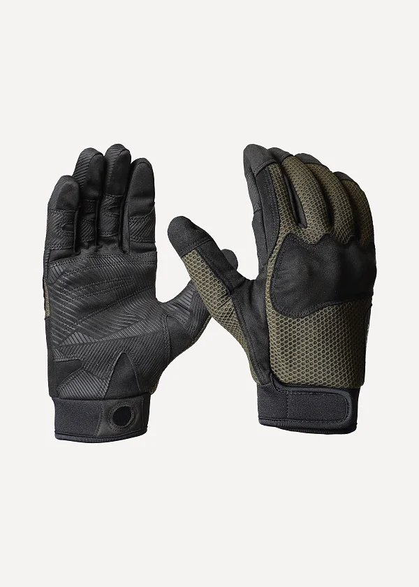 - Тыльная сторона выполнена из дышащего мягкого синтетического трикотажа. Благодаря эластичным свойствам материала перчатки не ограничивают движения. Область костяшек кулака усилена накладкой из искусственной замши