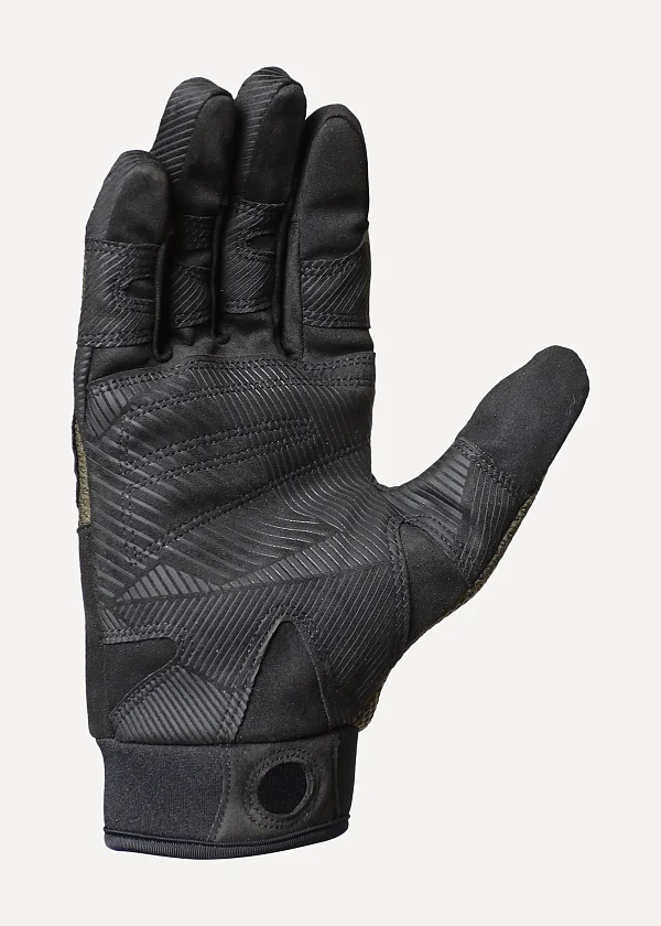 - Внутренняя сторона ладони и пальцев из искусственной замши, с перфорацией для вентиляции на нескольких участках. Усиление вторым слоем искусственной кожи в наиболее нагруженных местах, с точечным силиконовым покрытием для защиты от проскальзывания