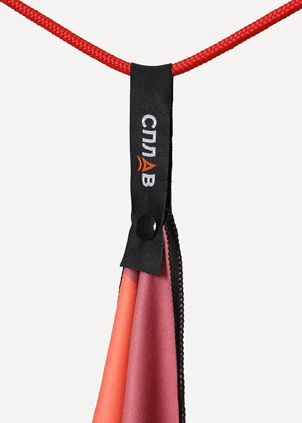Петля для подвешивания на кнопке позволяет легко повесить полотенце сушиться практически в любом месте.