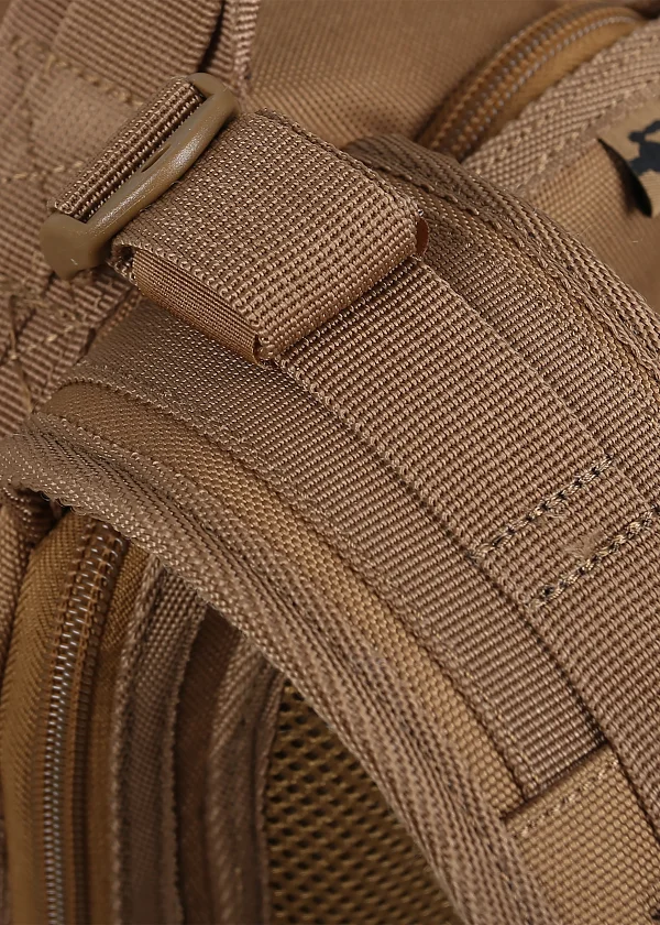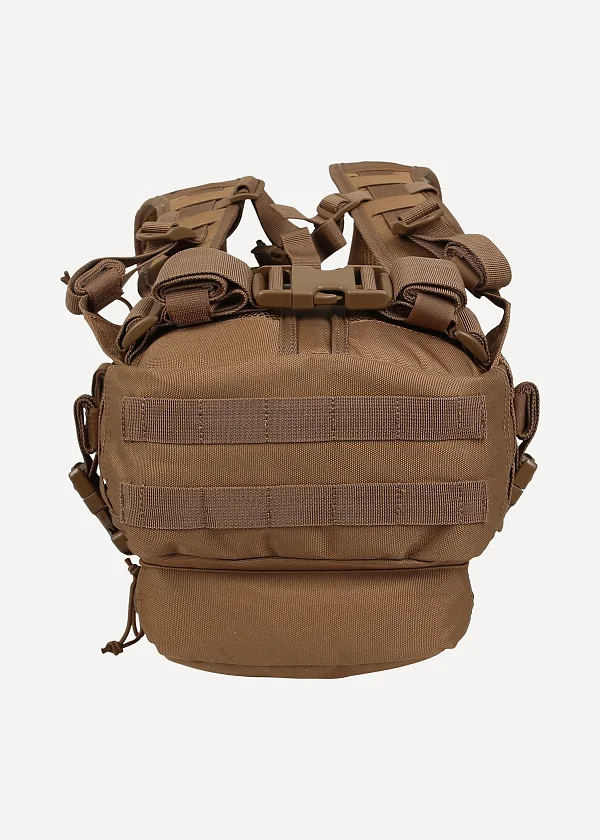 - Несъемные лямки с анатомическим силуэтом. Два слоя пены и высокопрочный эластичный нейлон для мягкости и комфорта. Верхние оттяжки. Ячейки PALS для крепления подсумков выполнены методом лазерной резки в усиленной ткани, что обеспечивает лямкам тонкий профиль и плоскую поверхность, не мешая прикладке оружия