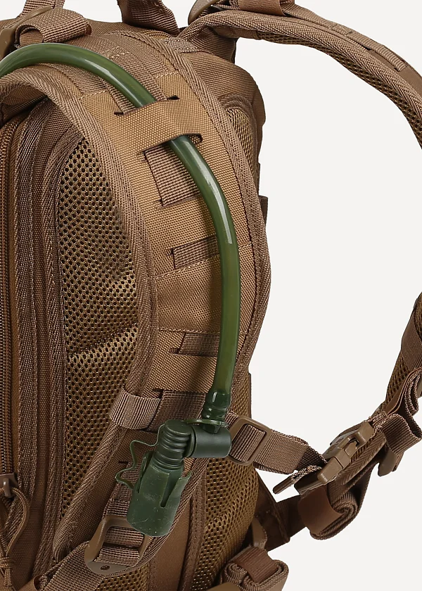 - Совместимость с питьевыми системами — в спине имеется отделение с внешним доступом на молнии для 2л гидратора, петли для подвеса и два клапана на липучке для вывода наружу трубки. Питьевая система в комплект не входит!