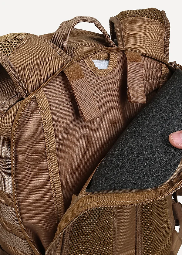 - Cпинка рюкзака благодаря многослойной структуре имеет высокую жесткость и обеспечивает отличную вентиляцию. Внутри расположен карман для съемной вставки из очень жесткой пены (в комплекте)