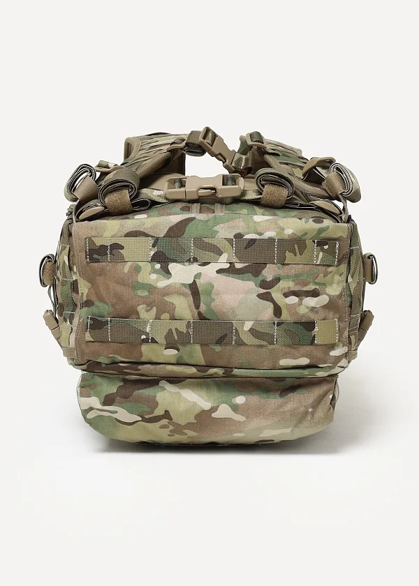 Вся свободная внешняя площадь ранца обшита стропами PALS. Используются нестандартные центрированные закрепки-зигзаги (начало и конец закрепки расположены в её середине для большей надёжности).