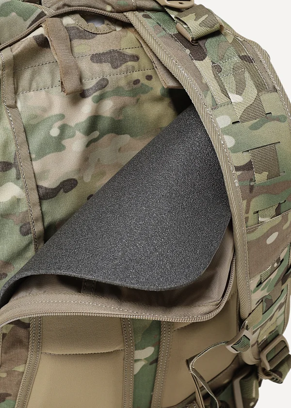 Cпинка рюкзака благодаря многослойной структуре имеет высокую жёсткость и обеспечивает отличную вентиляцию. Внутри расположен карман для съёмной вставки из жёсткой пены (в комплекте).