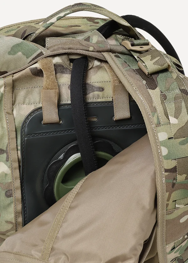 Совместимость с питьевыми системами — в спине имеется отделение с внешним доступом на молнии для 3 л гидратора, и две петли на липучках для подвеса. Трубка гидратора выводится внутрь главного отделения через отверстие, а оттуда наружу через специальный клапан сверху ранца. Питьевая система в комплект не входит!
