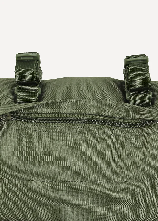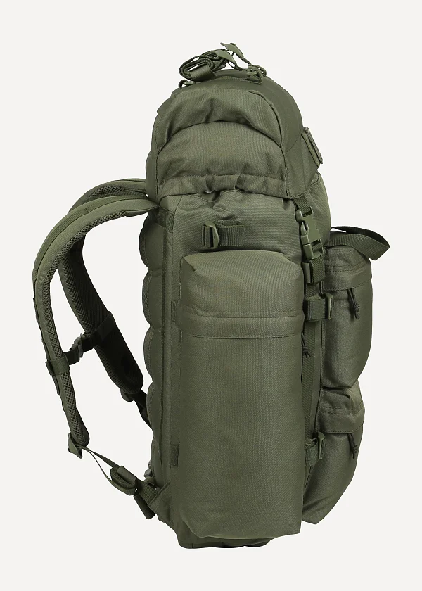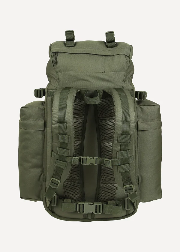 - Боковые карманы рюкзака пришиты только по вертикальным краям, так что между ними и рюкзаком образуются плоские отделения со входом сверху для переноски длинномерных грузов. Выше карманов нашиты утяжки для надежного закрепления этих грузов