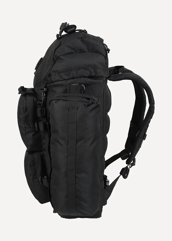 - Два боковых кармана на молнии, во всю высоту основного отделения. На внешней поверхности нашиты стропы для крепления дополнительного груза