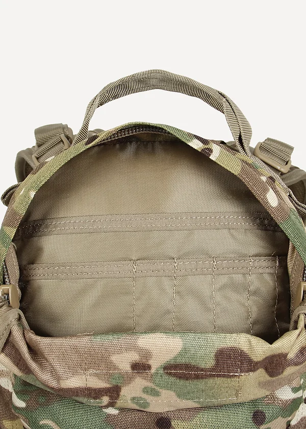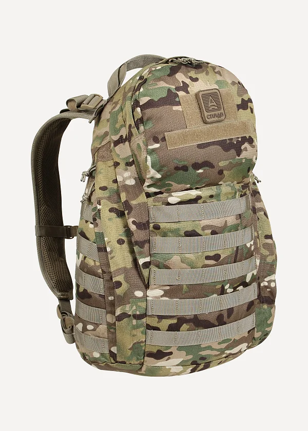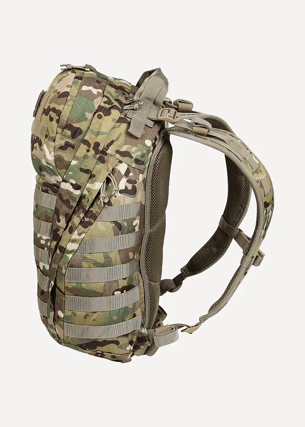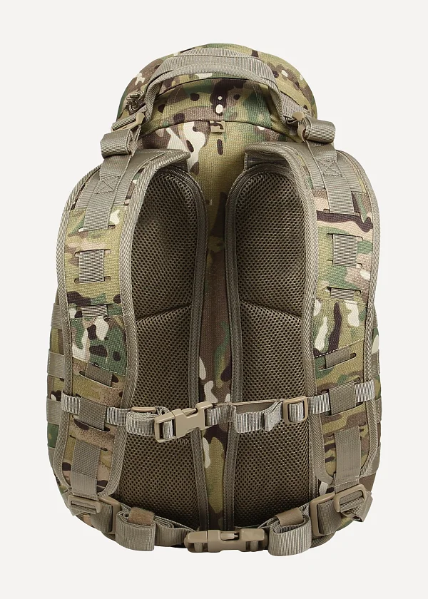 - Несъемные лямки с анатомическим силуэтом. Два слоя пены и высокопрочный эластичный нейлон для мягкости и комфорта. Верхние оттяжки. Ячейки PALS для крепления подсумков выполнены методом лазерной резки в усиленной ткани, что обеспечивает лямкам тонкий профиль и плоскую поверхность, не мешая прикладке оружия