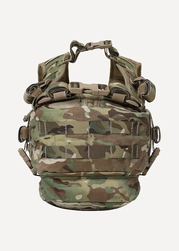 Несъемные лямки с анатомическим силуэтом. Два слоя пены и высокопрочный эластичный нейлон для мягкости и комфорта. Верхние оттяжки. Ячейки PALS для крепления подсумков выполнены методом лазерной резки в усиленной ткани, что обеспечивает лямкам тонкий профиль и плоскую поверхность, не мешая прикладке оружия