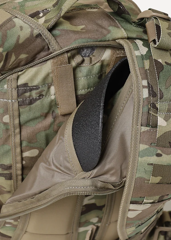 Cпинка рюкзака благодаря многослойной структуре имеет высокую жёсткость и обеспечивает отличную вентиляцию. Внутри расположен карман для съёмной вставки из жёсткой пены (в комплекте)