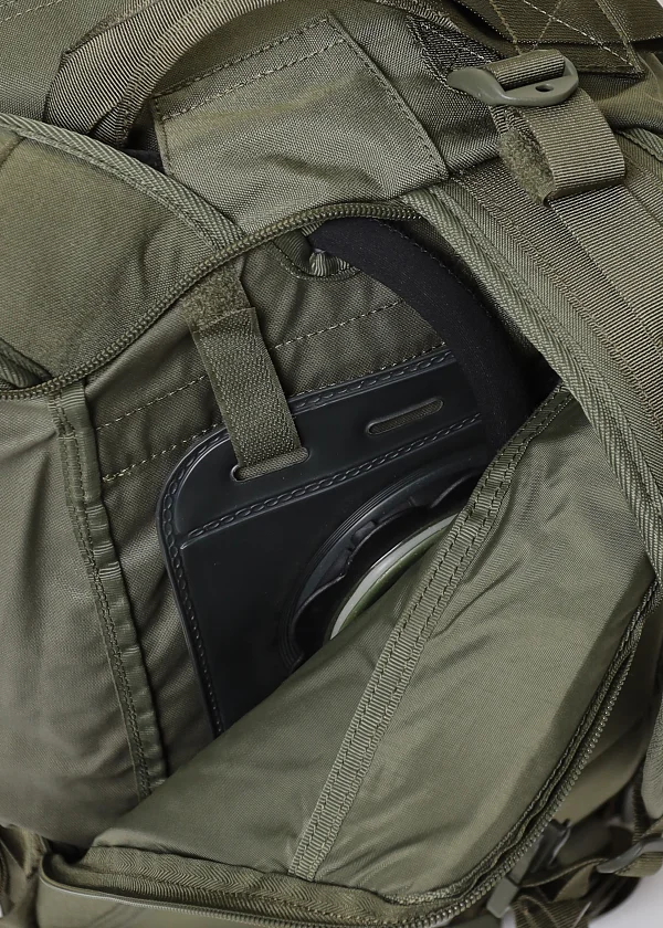 - Совместимость с питьевыми системами — в спине имеется отделение с внешним доступом на молнии для 3л гидратора, и две петли на липучках для подвеса. Трубка гидратора выводится внутрь главного отделения через отверстие, а оттуда наружу через специальный клапан сверху ранца. Питьевая система в комплект не входит!