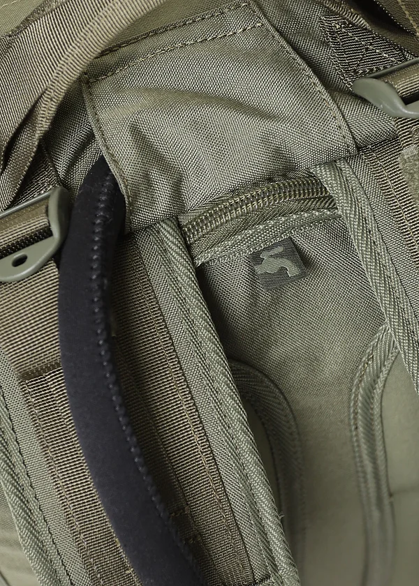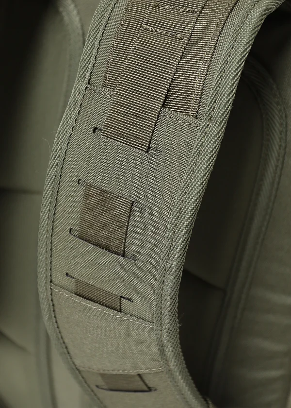 - Несъемные лямки с анатомическим силуэтом. Два слоя пены и высокопрочный эластичный нейлон для мягкости и комфорта. Верхние оттяжки. Ячейки PALS для крепления подсумков выполнены методом лазерной резки в усиленной ткани, что обеспечивает лямкам тонкий профиль и плоскую поверхность, не мешая прикладке оружия. В комплекте съемная грудная стяжка с подрезиненной для комфорта стропой