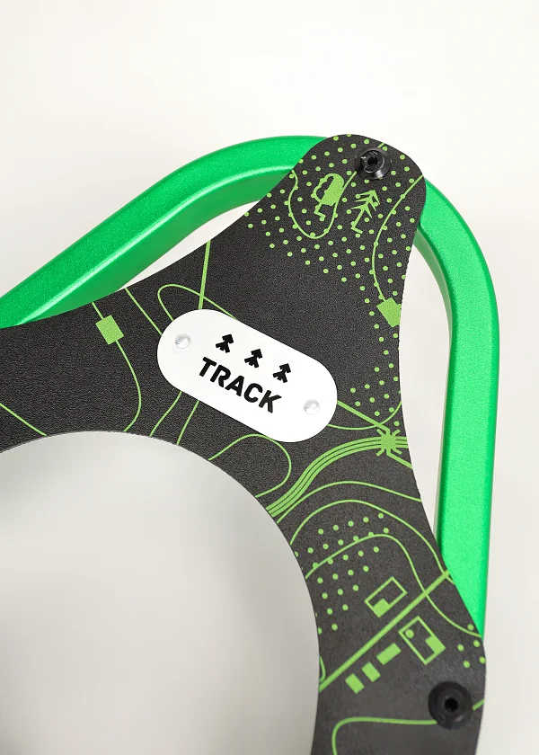 - Стальные зубчатые полозья на нижней поверхности деки предотвращают боковое соскальзывание, а увеличенная длина зубьев в передней части и расположенные под углом друг к другу зубчатые пластинки в задней части удерживают от скольжения назад