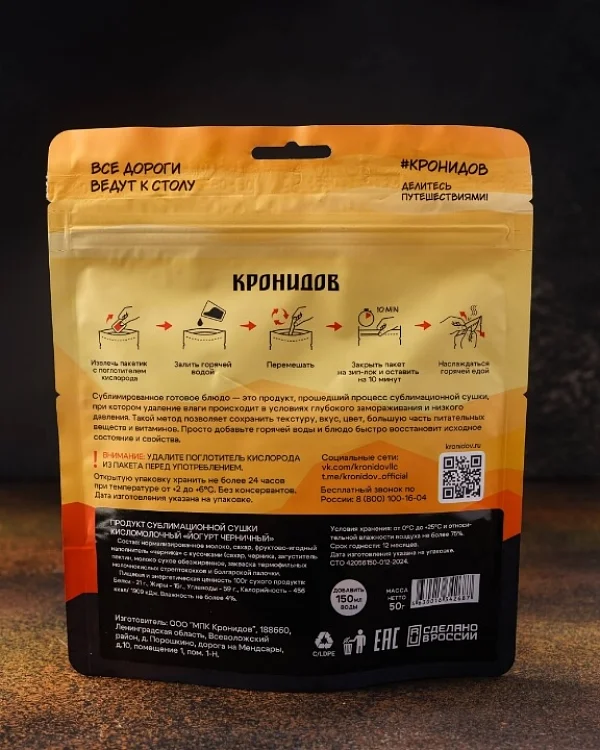 - Залить примерно 133 мл. горячей воды или холодной воды с использованием беспламенного нагревателя пищи (БНП).