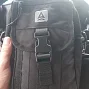 - На изнанке задней стенки основного отделения нашиты липучки-петли для крепления внутренней организации или кобуры для скрытого ношения оружия (в комплект не входят). Дополнительно для страховки кобуры в середине липучки расположена утяжка стропой с двухщелевой пряжкой, которая обхватывает кобуру поперек